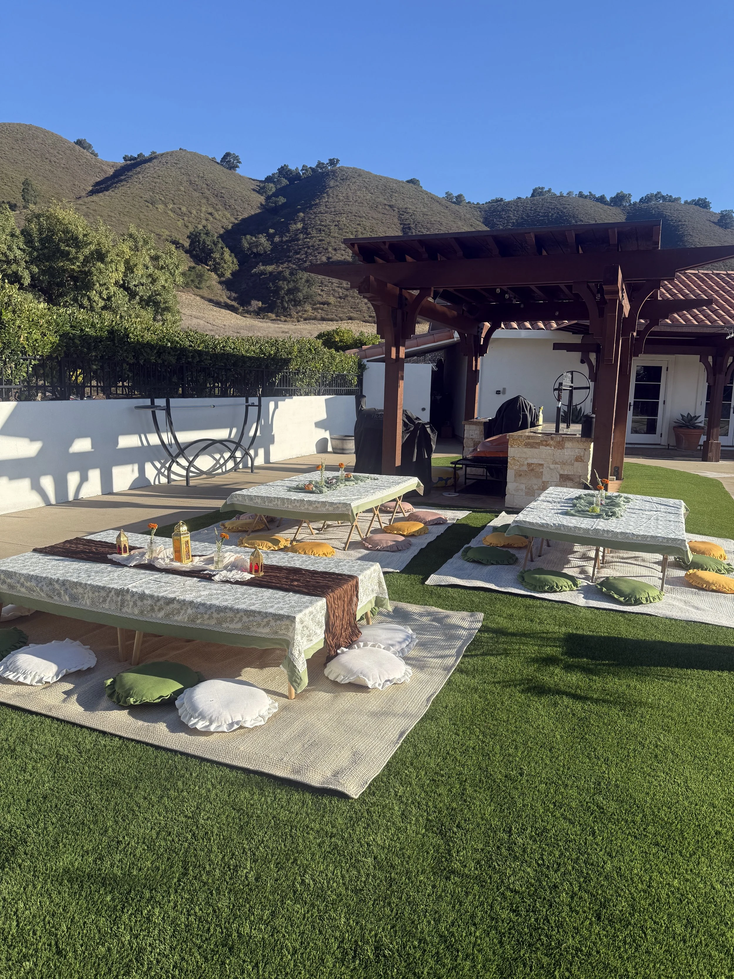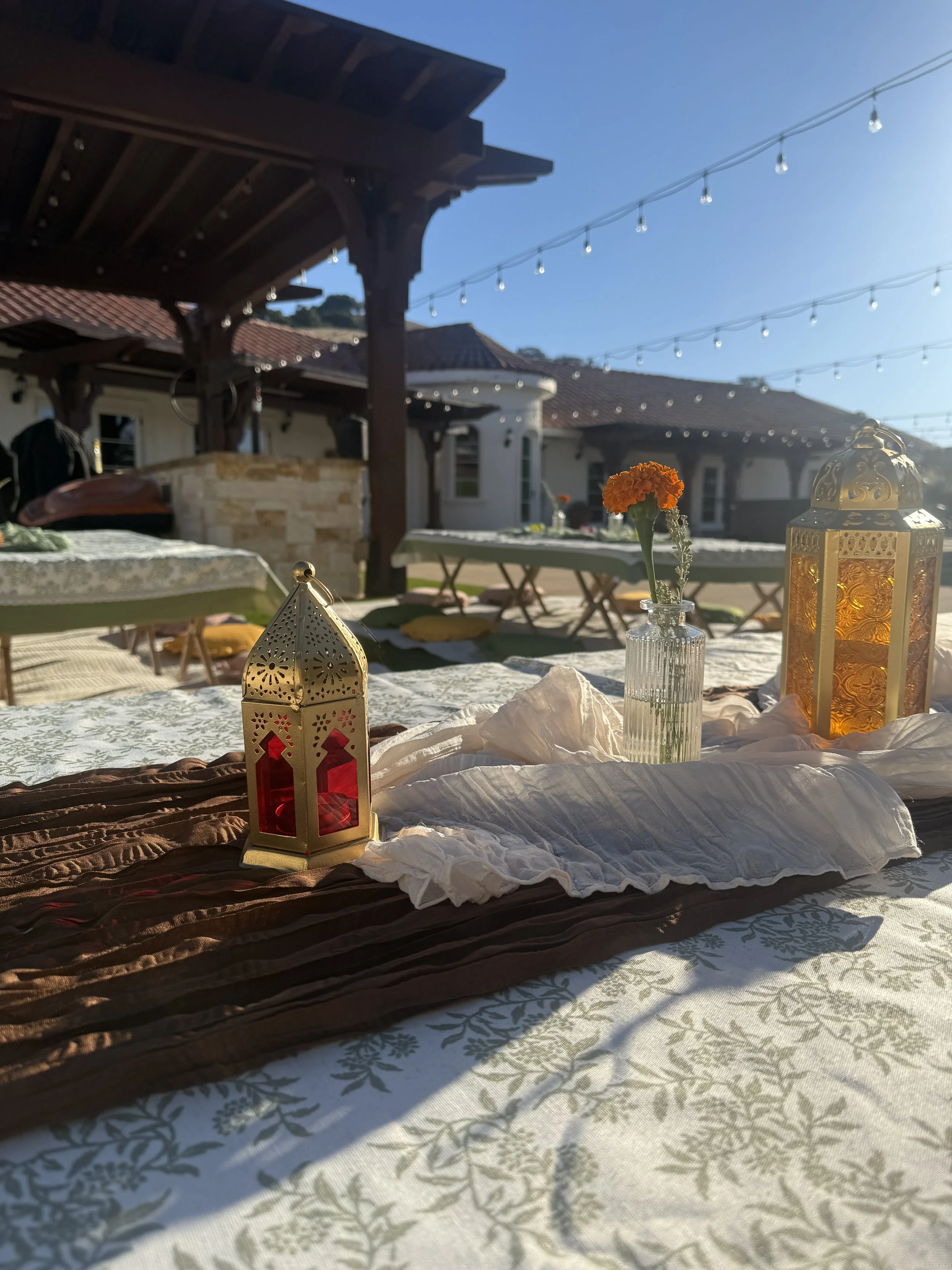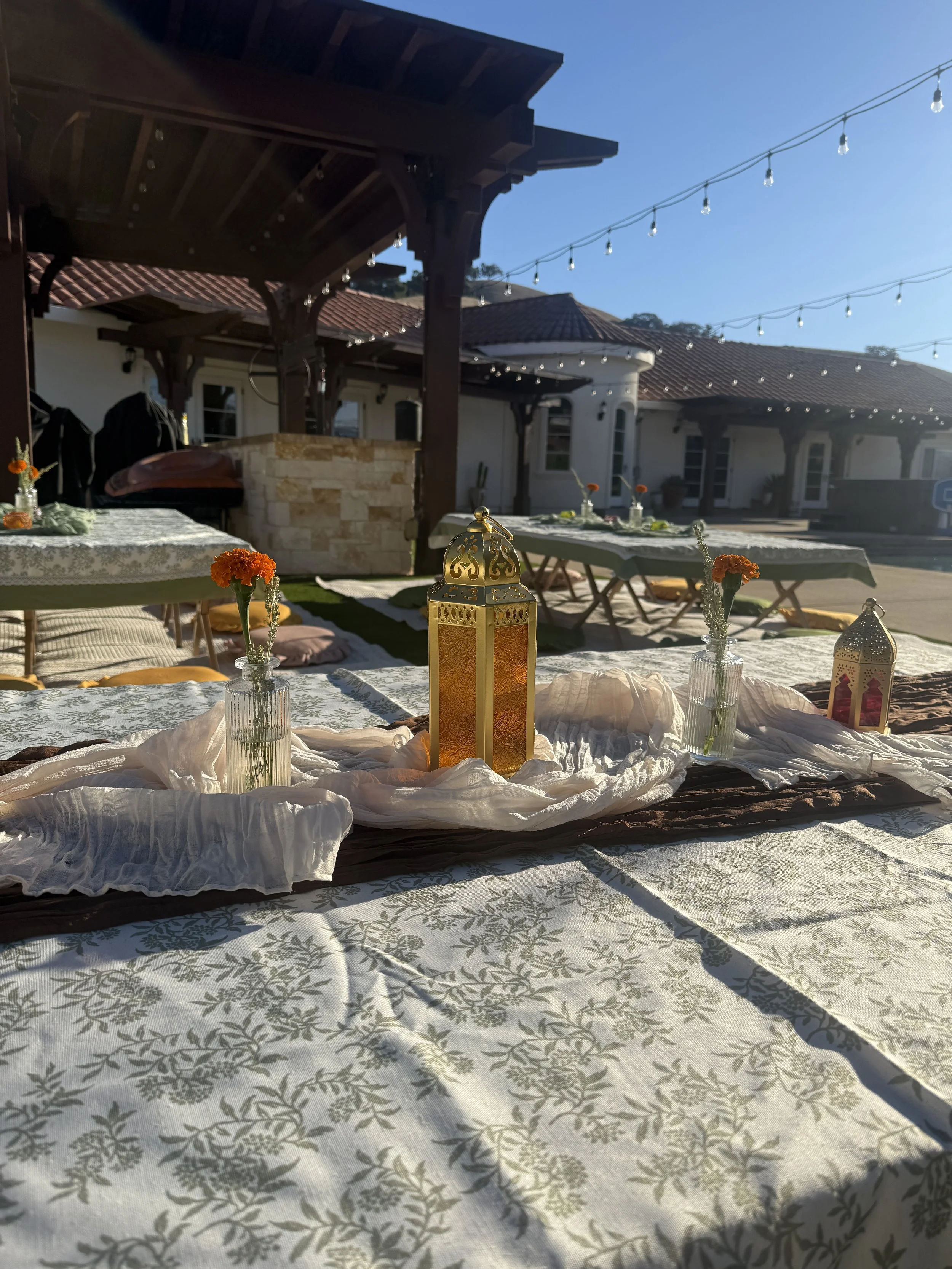Casual Picnicft. lanterns & marigolds for Diwali weekperfect for more casual celebrations with open seating
