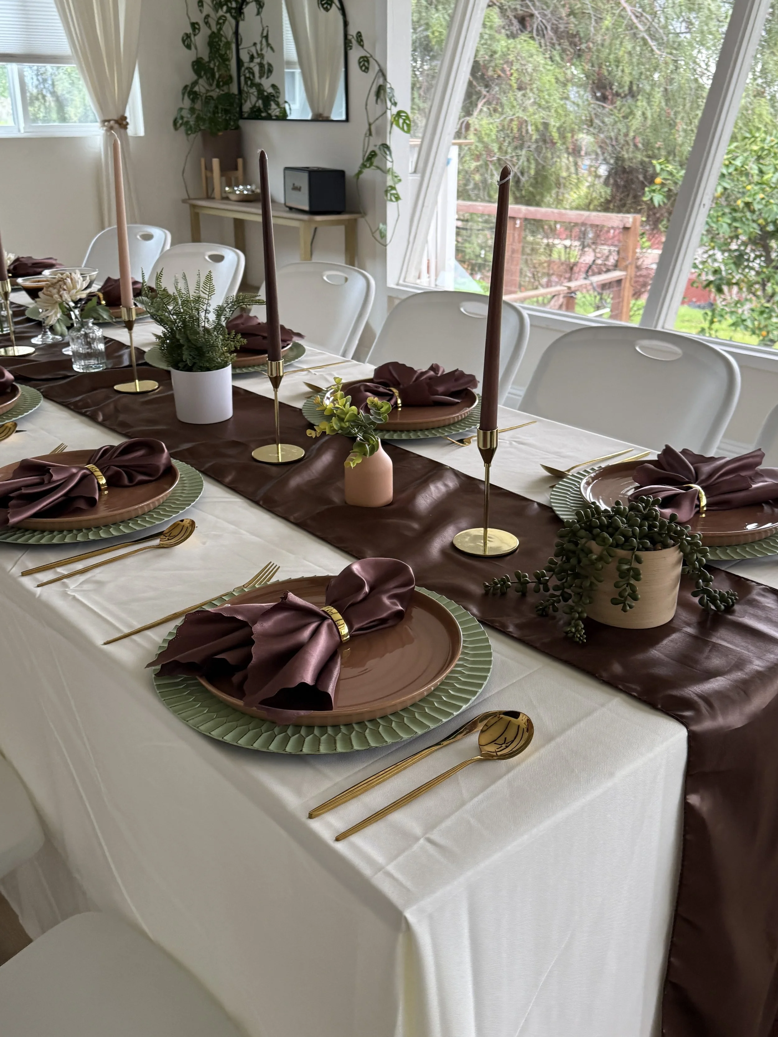 Our tablescapes are thoughtfully designed to transform the table into a beautiful focal point for your event. Each setup features layered linens, curated décor, place settings, and custom details such as party favors, placecards, & menus that bring the overall vision together in an elevated and cohesive way. Styled to feel both inviting and intentional, our tablescapes create the perfect setting for guests to gather, celebrate, and enjoy every detail of the experience.